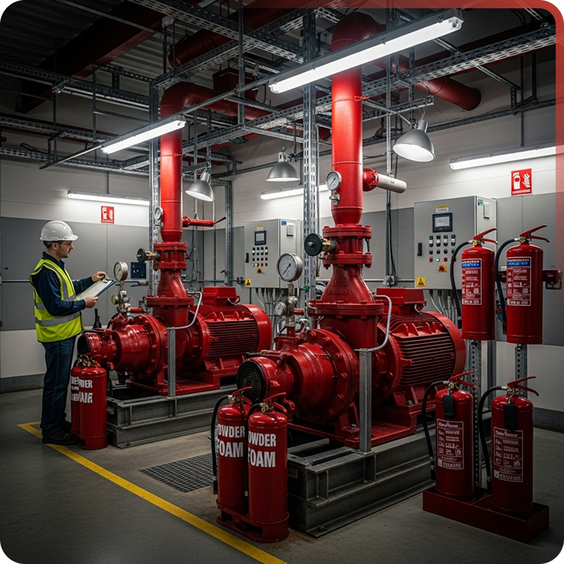 توريد وتركيب مضخات الحريق وطفايات الحريق